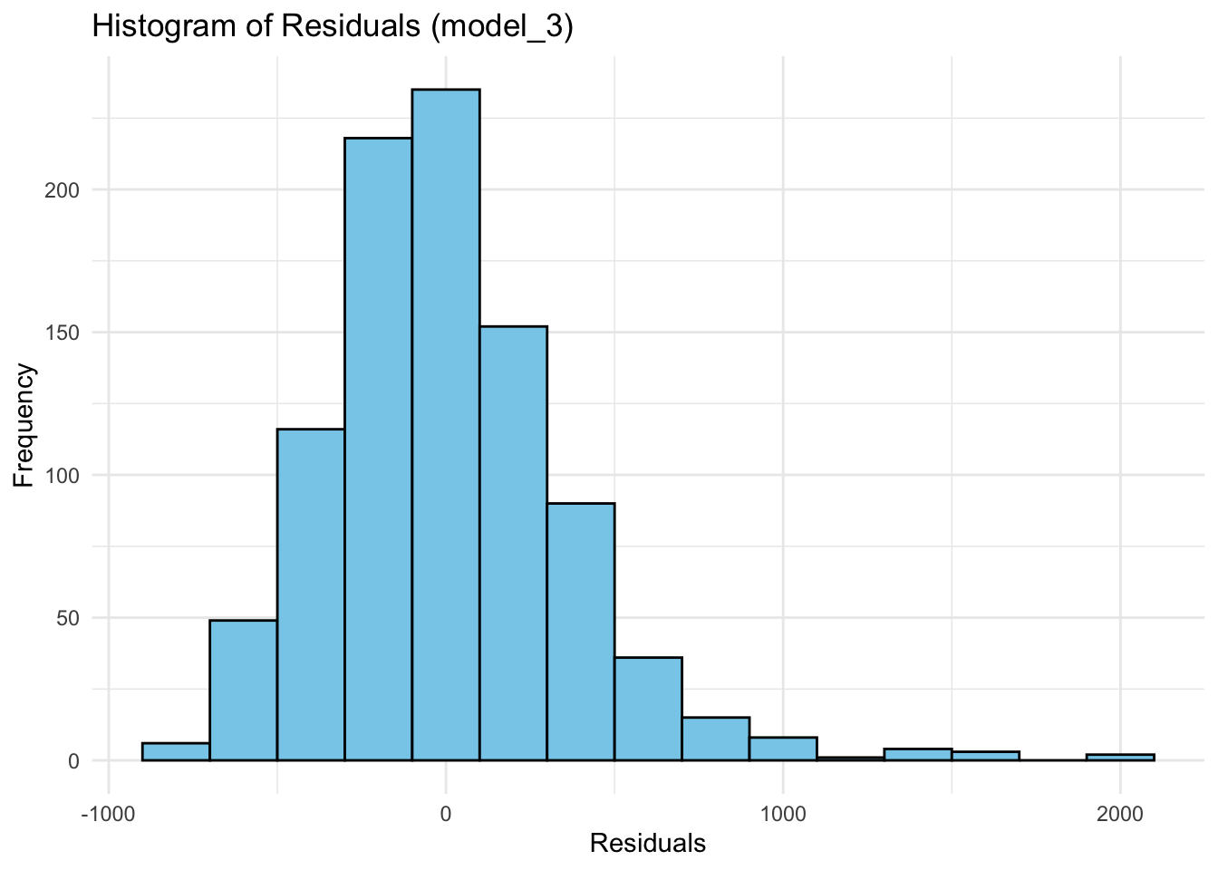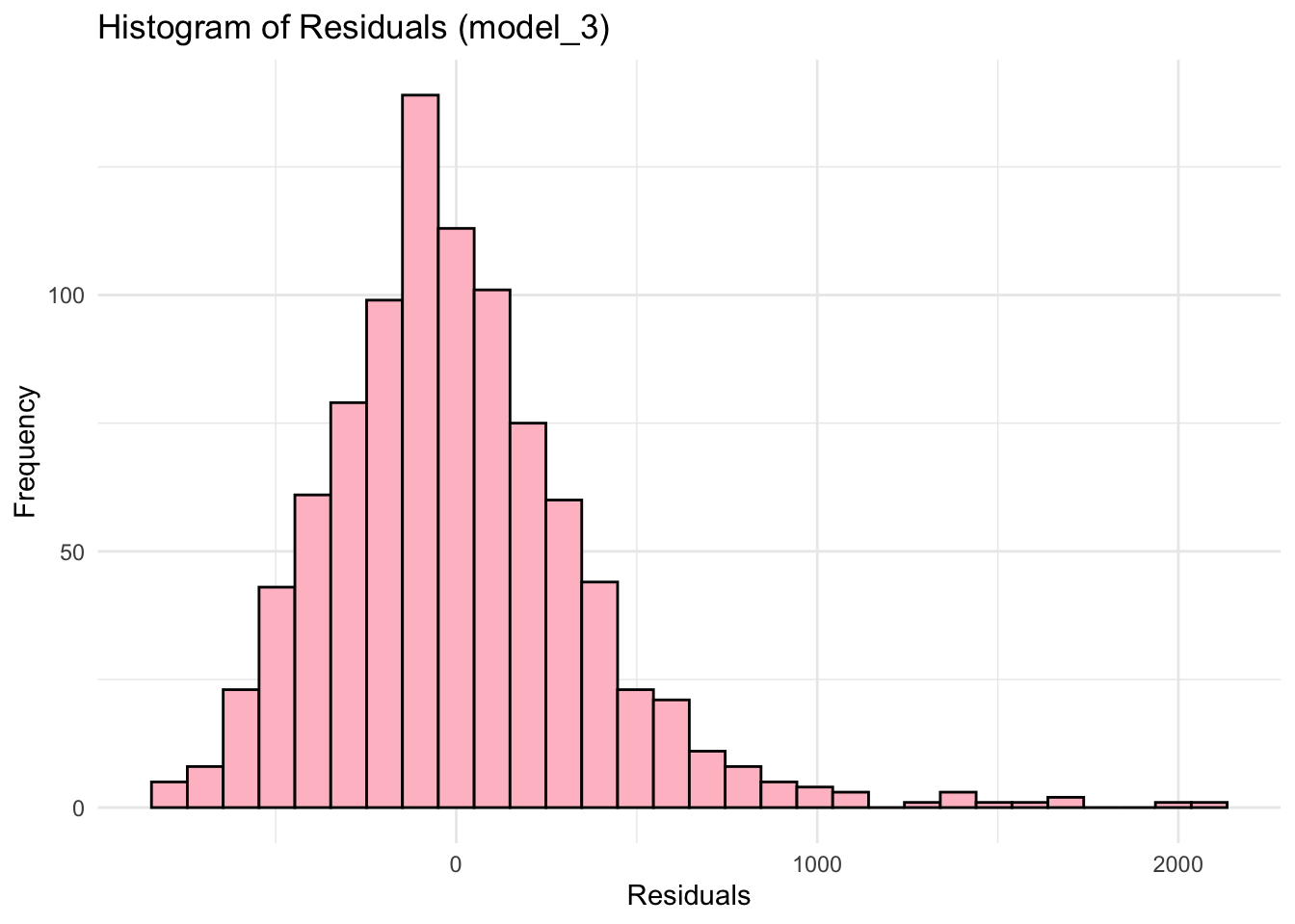 labs(title = "Histogram of Residuals (model_3)", x = "Residuals", y = "Frequency") +